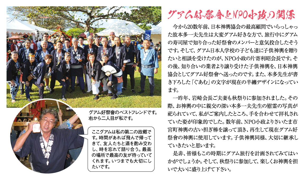 2019グアム日本人会秋祭りの様子です。みんな楽しそうですね。斎藤さん、日本とグアムの橋渡し本当に素晴らしい事です!(あ〜GUAMいきてぇー)